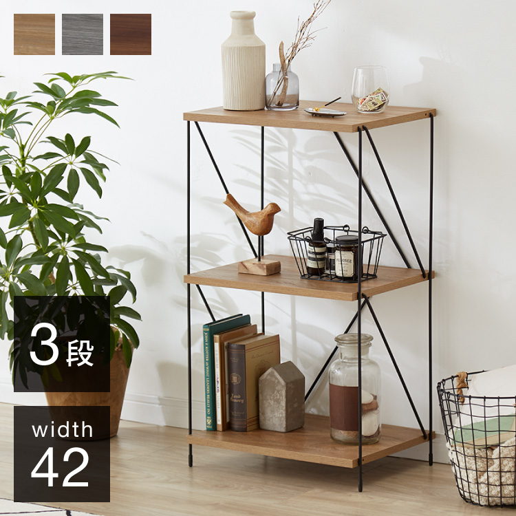 ワイヤーラック 3段 幅42cm 木目調 スチール 組み立て簡単 工具不要 おしゃれ 北欧 収納 スチールラック ワイヤーラック スチールシェルフ 子供部屋 代引不可