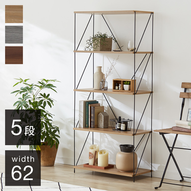 ワイヤーラック 5段 幅62cm 木目調 スチール 組み立て簡単 工具不要 おしゃれ 北欧 収納 スチールラック ワイヤーラック スチールシェルフ 子供部屋 代引不可