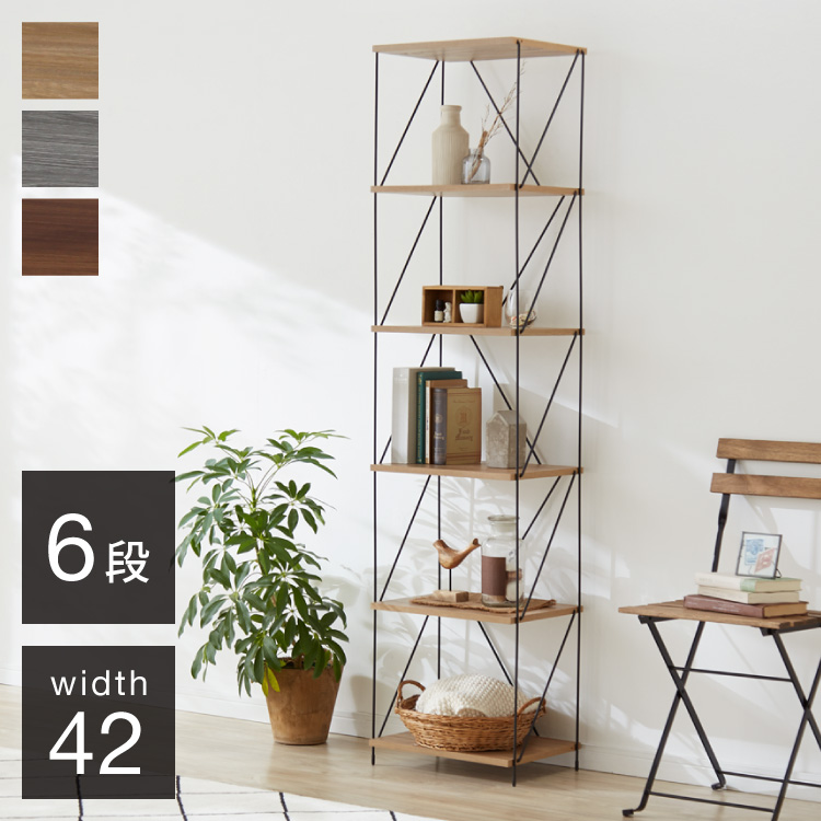 ワイヤーラック 6段 幅42cm 木目調 スチール 組み立て簡単 工具不要 おしゃれ 北欧 収納 スチールラック ワイヤーラック スチールシェルフ 子供部屋 代引不可