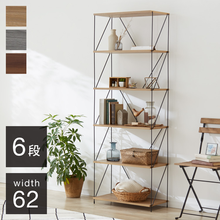 ワイヤーラック 6段 幅62cm 木目調 スチール 組み立て簡単 工具不要 おしゃれ 北欧 収納 スチールラック ワイヤーラック スチールシェルフ 子供部屋 代引不可