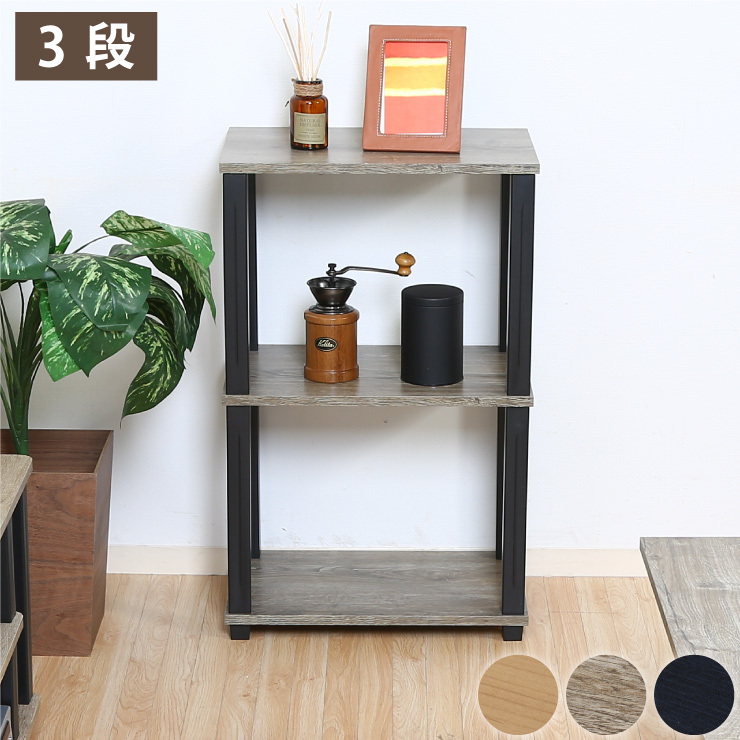 組立簡単 オープンラック 棚 シェルフ 3段 幅47 奥行30 スリム 収納 木製 木目 キッチン リビング ディスプレイ サイドテーブル