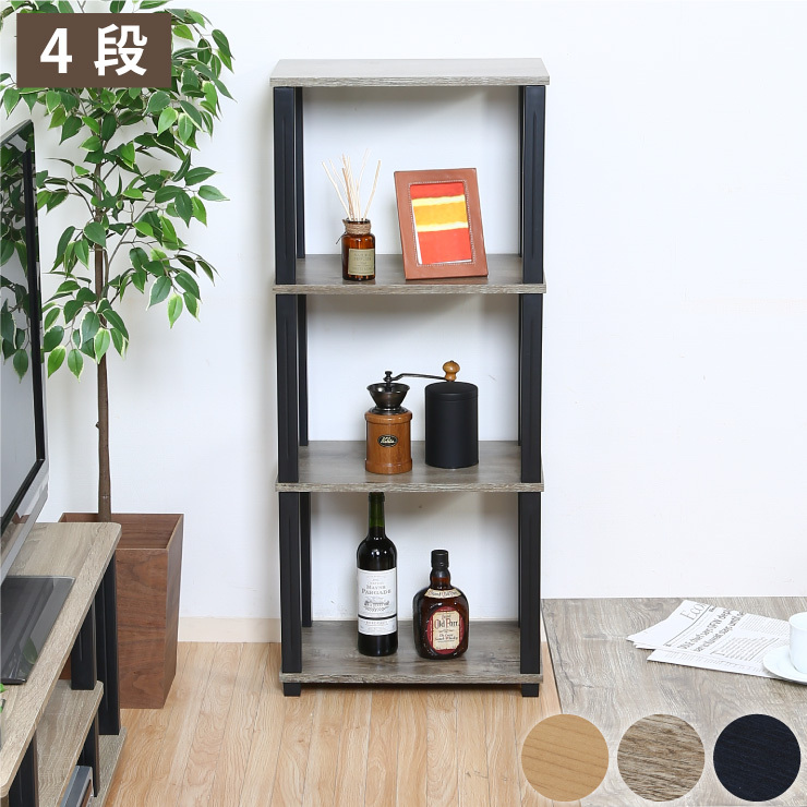 組立簡単 オープンラック 棚 シェルフ 4段 幅47 奥行30 スリム 収納 木製 木目 キッチン リビング ディスプレイ サイドテーブル