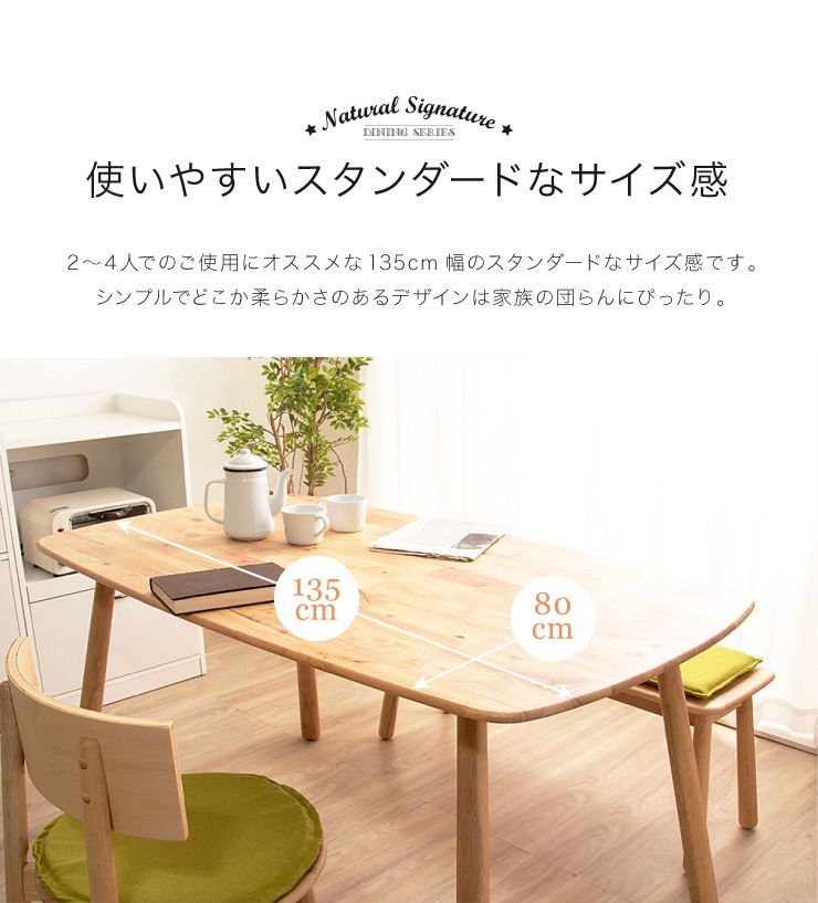 Natural Signature ダイニングテーブル ティムバ 135×80cm 天然木 木製 テーブル 食卓テーブル おしゃれ 北欧 代引不可