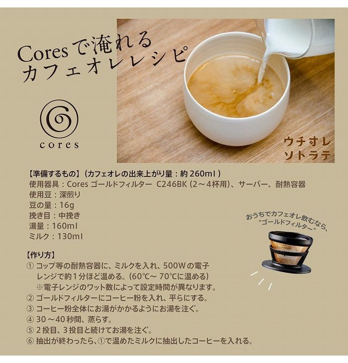 コレス Cores 純金メッキ コーヒーフィルター 2〜4杯用 ゴールドフィルター C246BK 紙フィルター不要 ステンレスフィルター ドリッパー おしゃれ