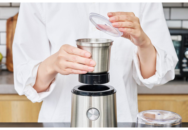 挽いている間に粉がグラインディングボウル周りに飛び散らないよう、ボウルに直接キャップができるため、グラインダー本体が清潔に保ちやすくなっています。