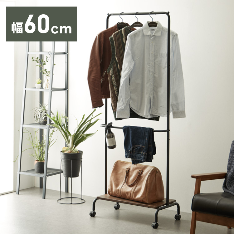 ハンガーラック スリム 2段 頑丈 幅60 省スペース コートハンガー ハンガーポール ワードローブ 棚付き キャスター付き 洋服収納 衣類収納
