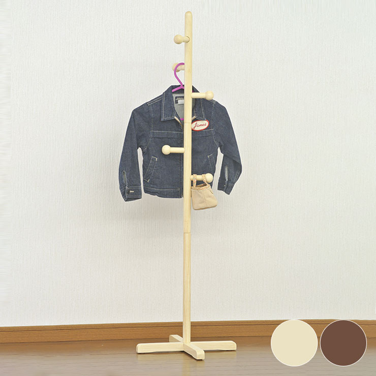 子供用 ポールハンガー 木製 高さ123.5cm ハンガーラック スタンドハンガー 洋服掛け カバン掛け ポールスタンド 省スペース 代引不可