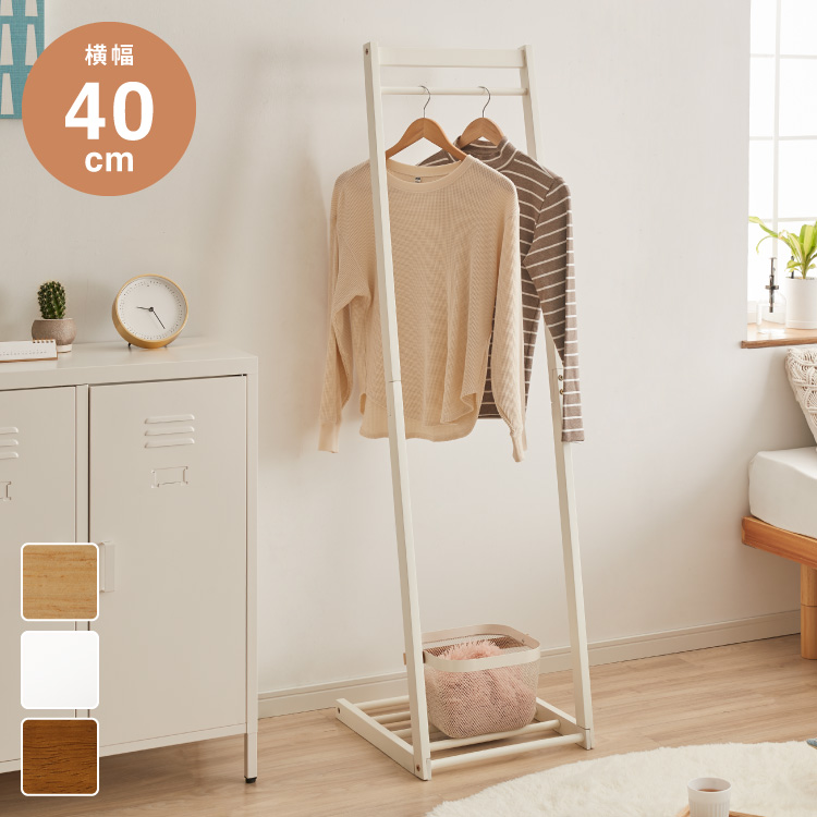 天然木 ハンガーラック 幅40cm 棚付き L型ハンガーラック 省スペース コンパクト スリム ナチュラル ハンガーラック 木製 ポールハンガー