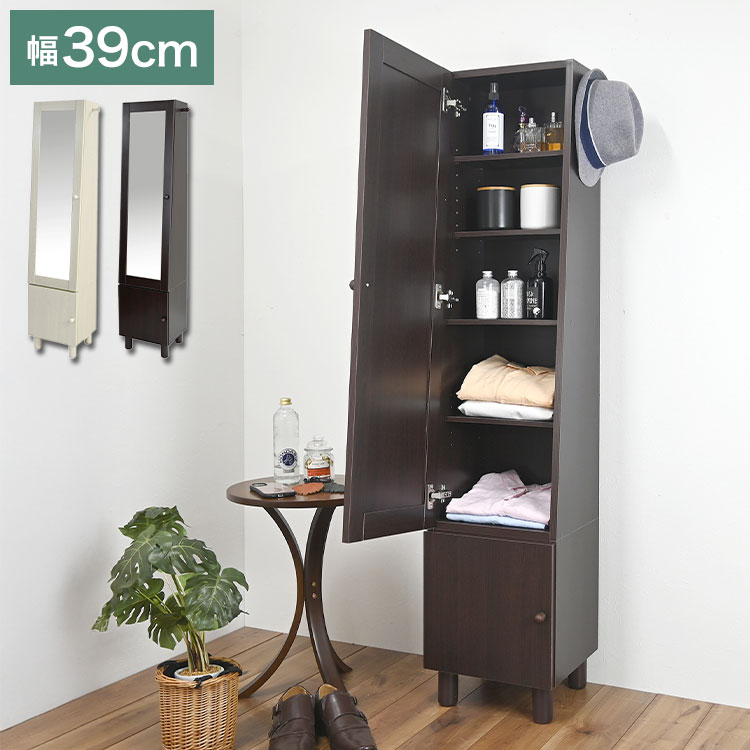 スタイルミラー付きスリムラック ミラー付き収納 収納棚 小物入れ ストッカー 鏡付き ミラーラック 収納ラック 寝室 リビング 全身鏡 鏡付き収納 代引不可
