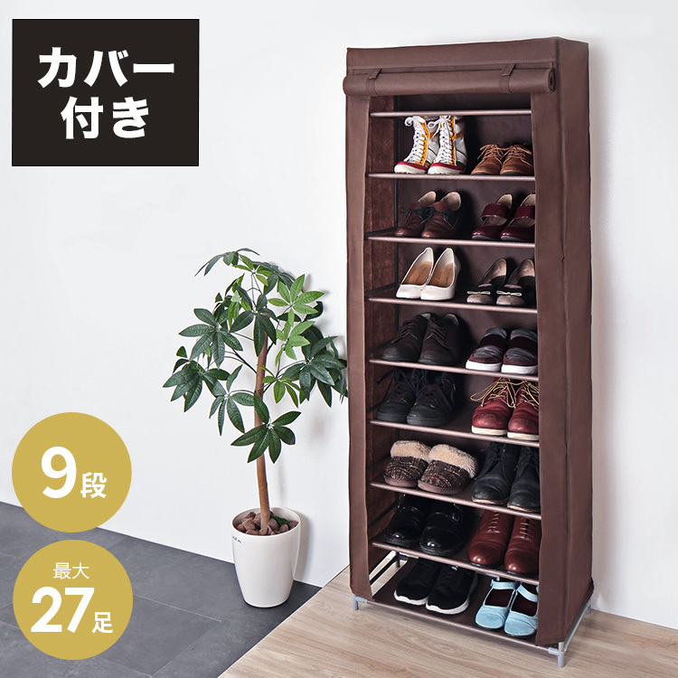 シューズラック 9段 スリム 幅60cm 省スペース 最大27足 不織布カバー付 撥水 軽量 可動棚 薄型 シューズボックス 下駄箱 靴入れ 玄関収納
