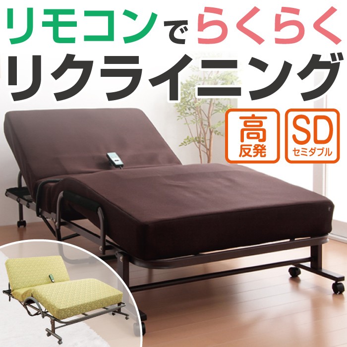 高反発 スプリングマット仕様 電動 リクライニングベッド セミダブル ベッド 折りたたみ 折りたたみベッド 代引不可