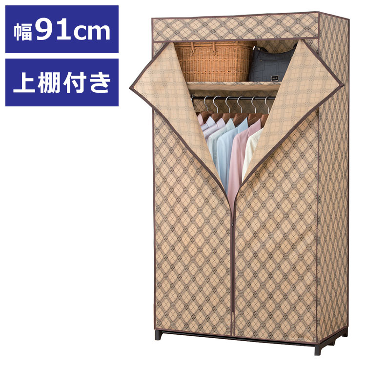 ハンガーラック カバー付き 幅91cm クローゼット 上棚付き 棚付き 通気性 不織布カバー ファスナー付き ファスナー コートハンガー 代引不可