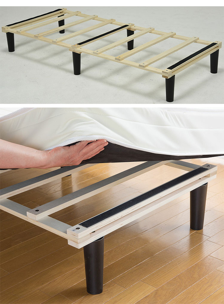 耐久性と通気性に優れたマットレス付きすのこベッド。