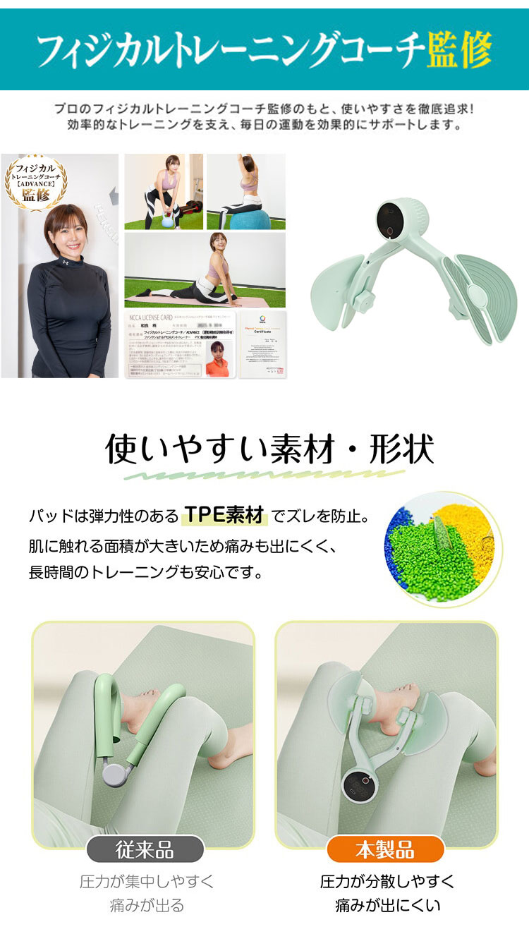 内もも運動マシン 挟むだけ 内転筋 骨盤底筋 トレーニング 強度 4段階調節 健康 美尻トレーニング 自宅 筋トレ ブルー グリーン 代引不可