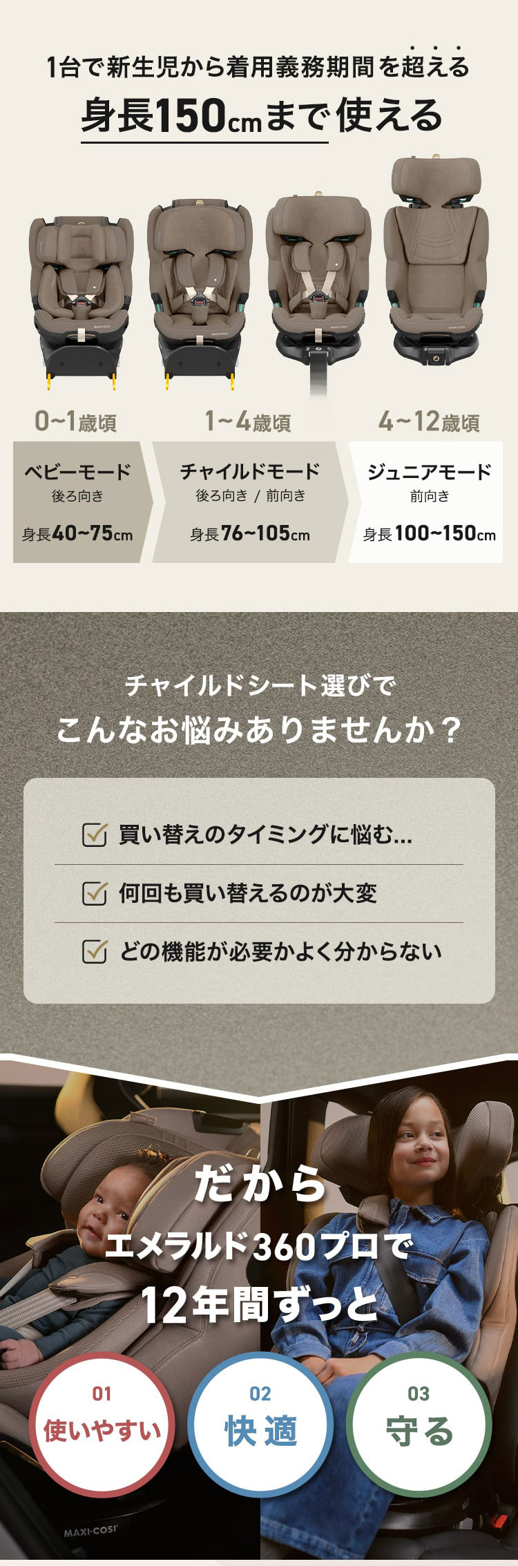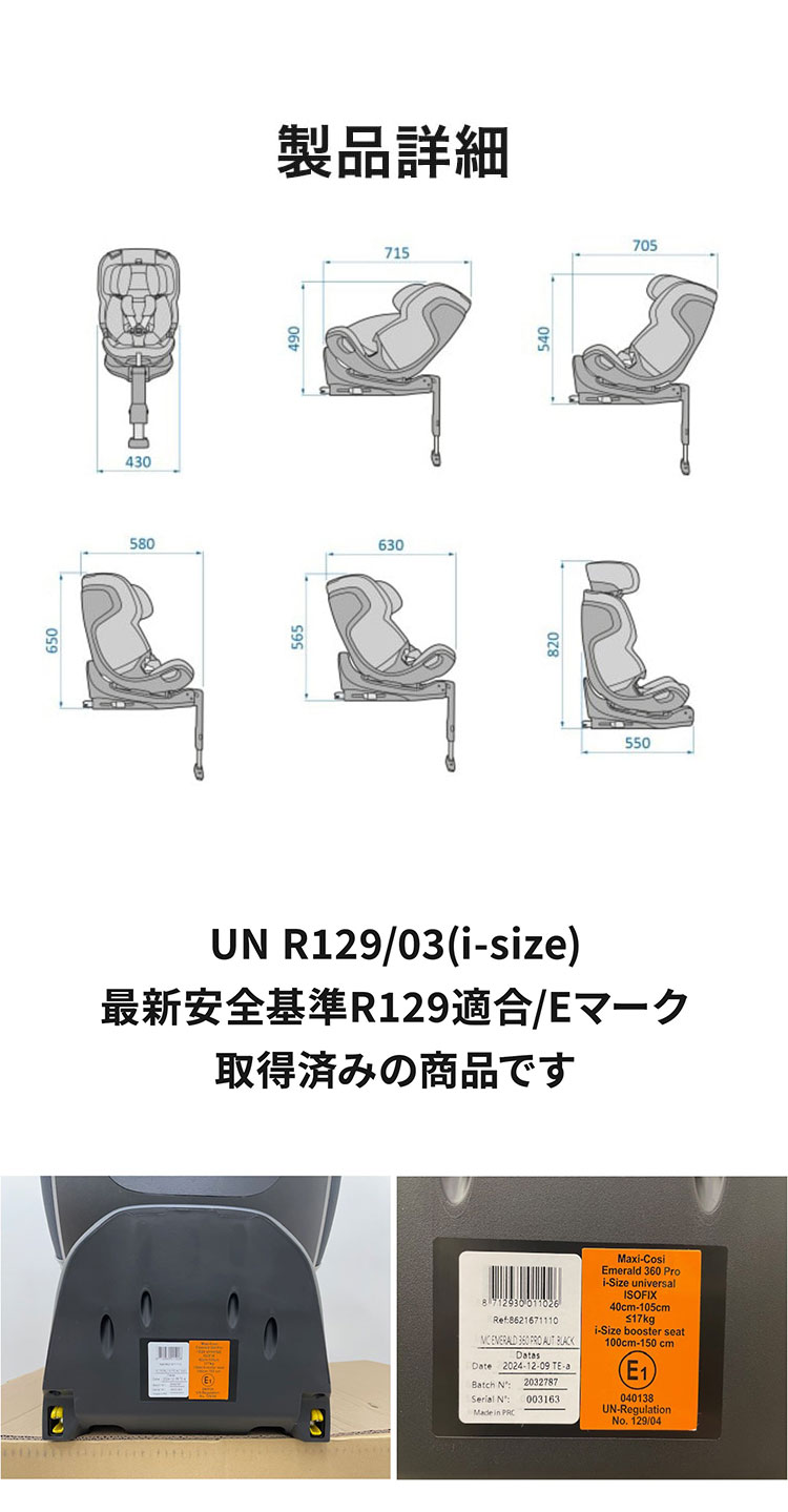 正規品 エメラルド360プロ マキシコシ MaxiCosi Emerald 360 Pro 新生児 12歳 ロングユース 回転式 チャイルドシート isofix レビュー報告でプロテクターシート