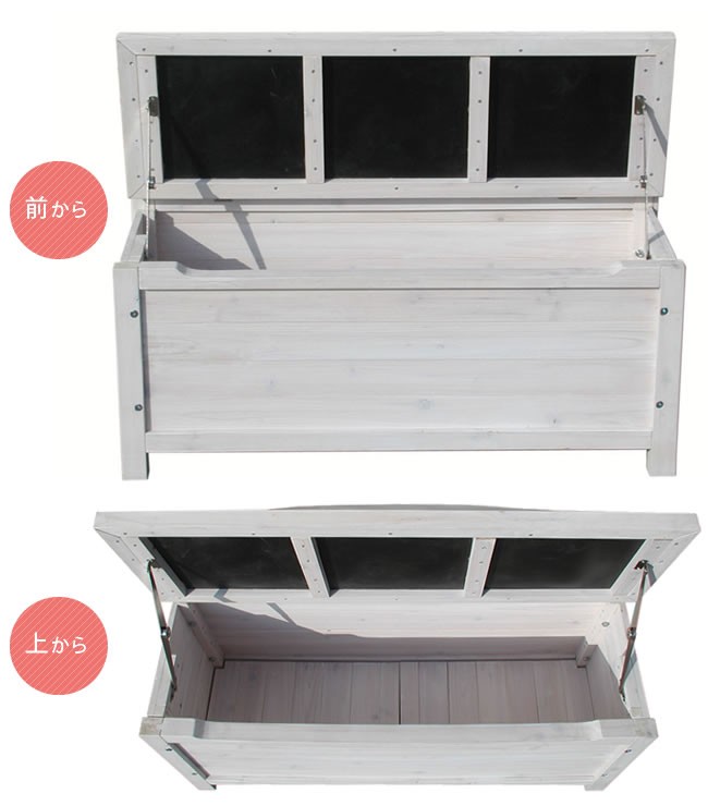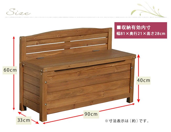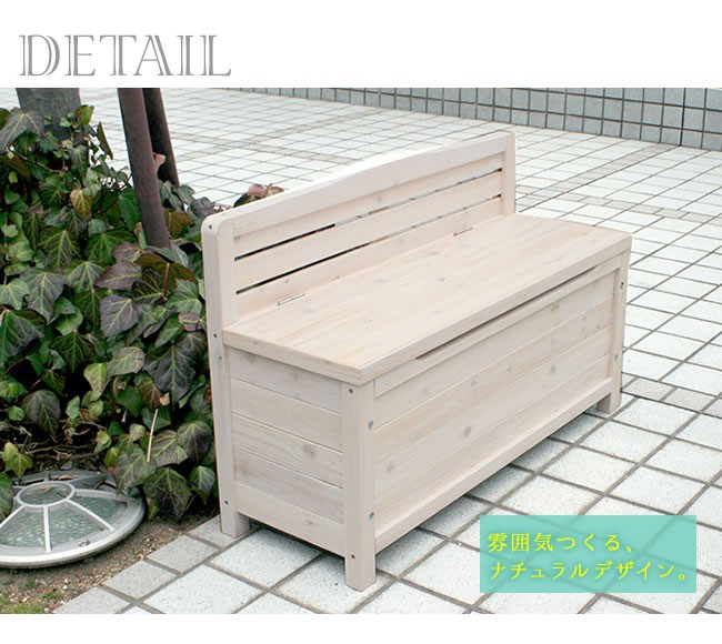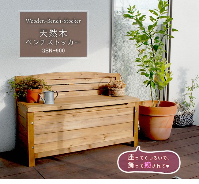 せまい場所でもほっこり…ナチュラル♪天然木が癒しの雰囲気を演出する、収納付きベンチです。座るスペースがまるごと収納になれば、大幅に省スペースになります!ずっと人気の高いロングセラー商品です。ガーデニング雑貨、掃除&洗濯用品、季節の小物などetc...散らかりがちなものが、すっきりきれいに片付きます。奥行33cmのスリムタイプなので、玄関脇やベランダなど、狭い場所にも設置でき、ちょっとした腰かけに便利。プランター台のようにグリーンや雑貨を飾っても素敵。お庭が素敵に見違えますよ♪