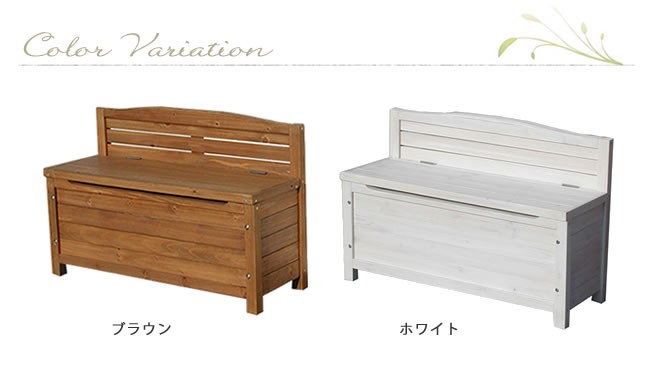 【天然木ベンチストッカー ブラウン/ホワイト】