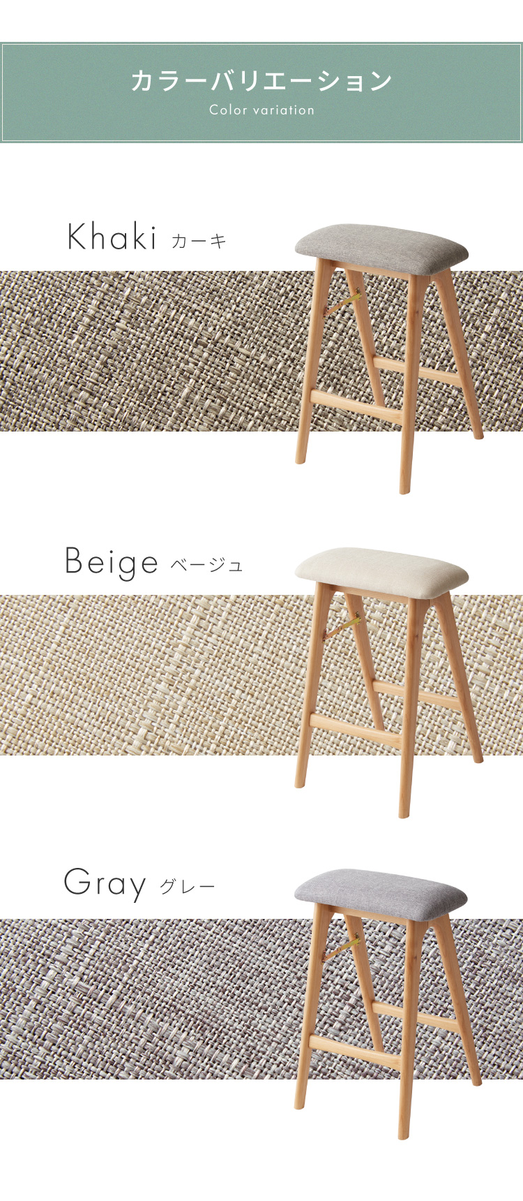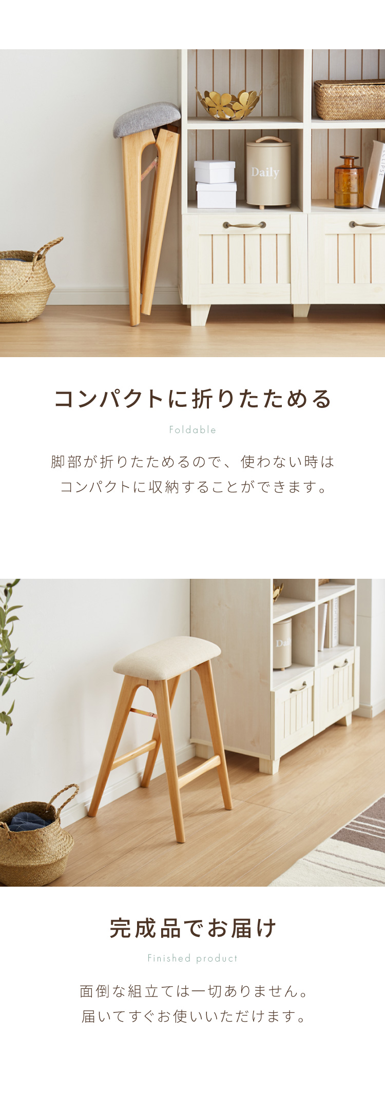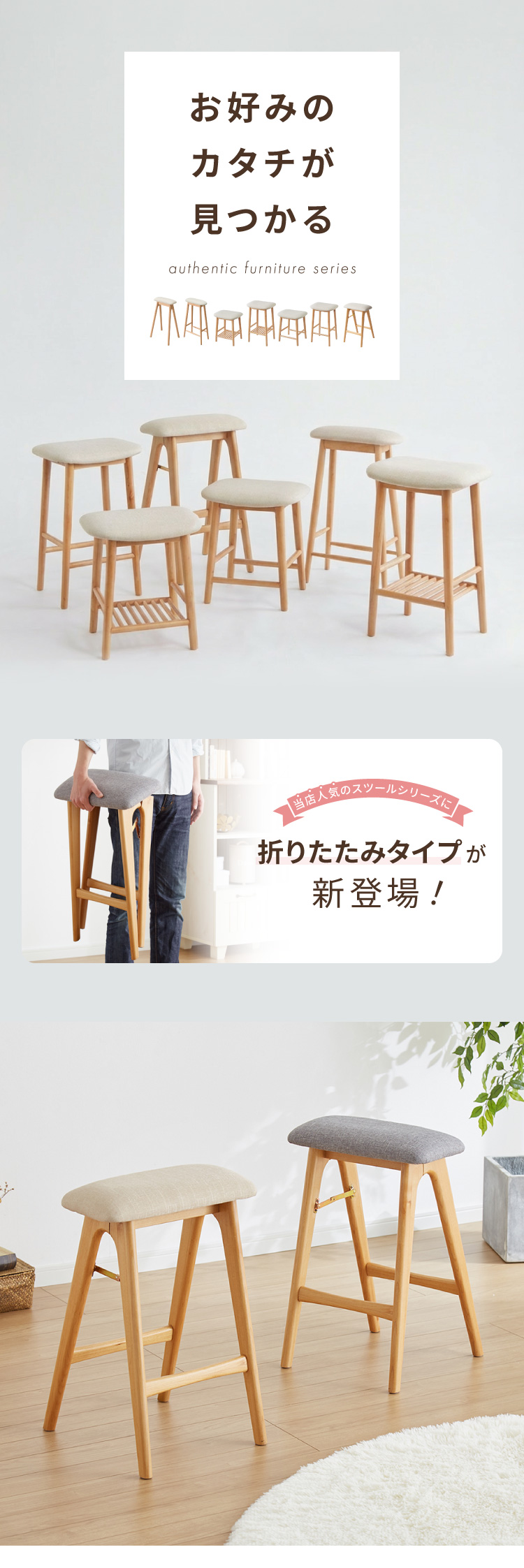 アルダー材を使った 折りたたみスツール サイン ファブリックスツール ハイスツール アルダー材 天然木 無垢材 ウッドスツール キッチンスツール