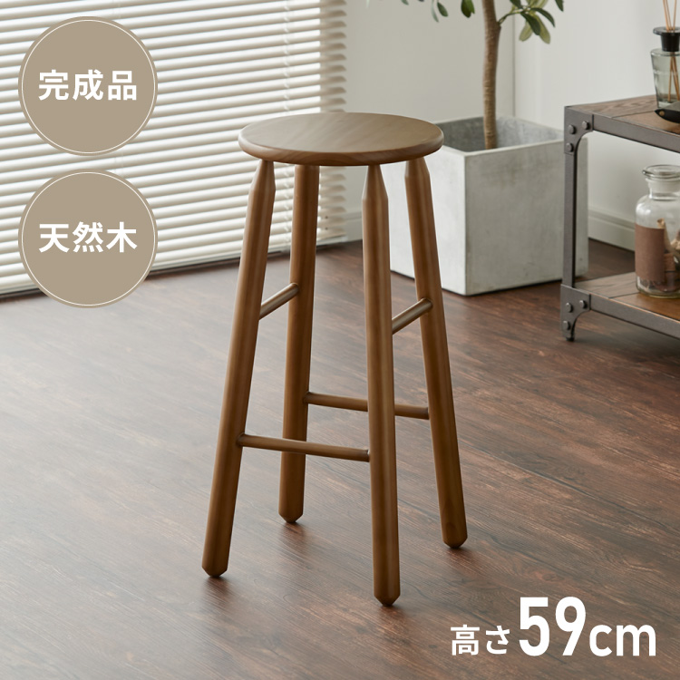 ハイスツール 天然木 無垢材 パイン材 木製スツール ウッドスツール キッチンスツール 木目 シンプル おしゃれ 北欧 木製椅子 カウンタースツール 代引不可