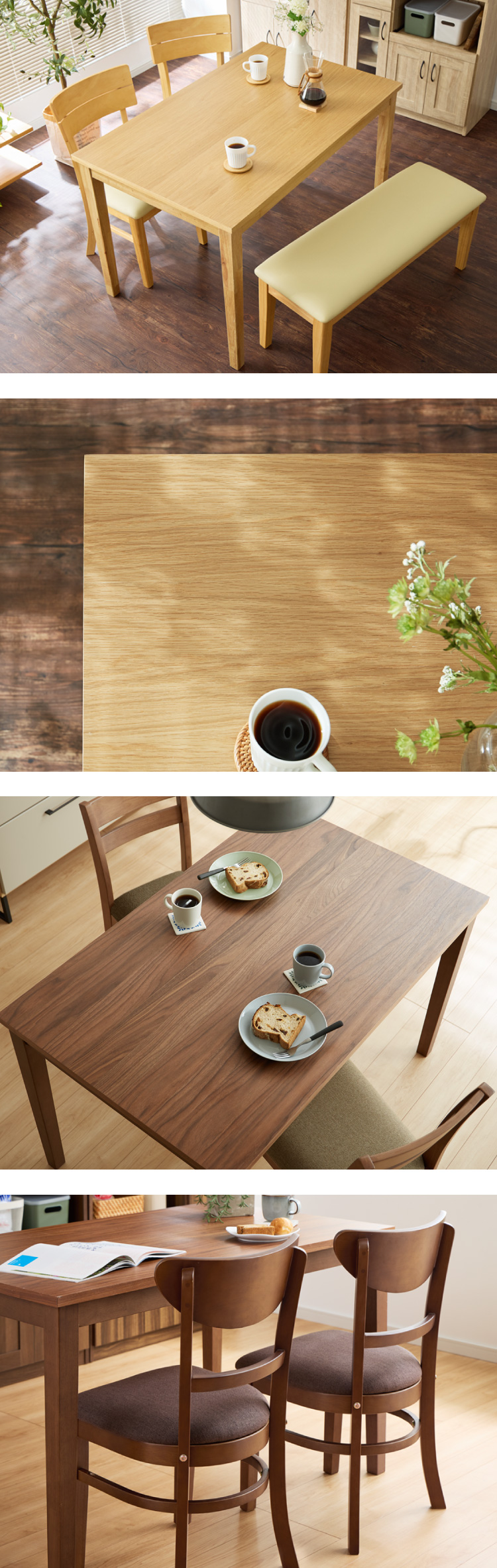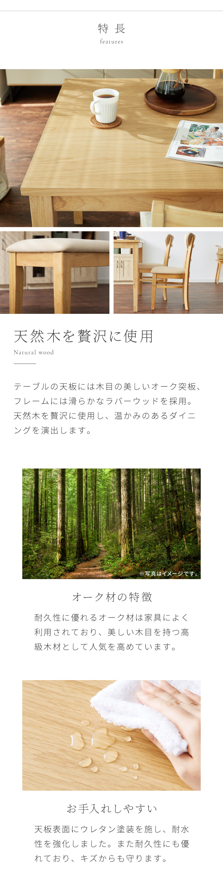 ダイニングセット 4点セット 120cm×75cm 背もたれウレタン 4人掛け ダイニングチェア セナUT 天然木 オーク ダイニングテーブル セット ダイニング