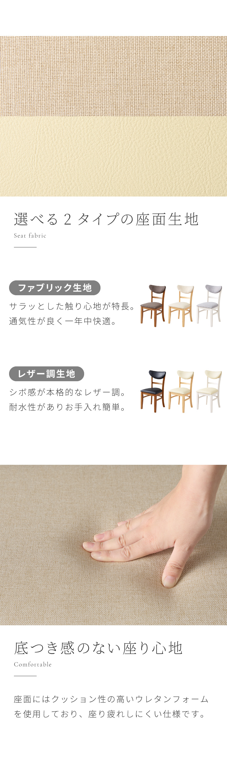 背もたれ:ウレタン、ファブリックorPVC
