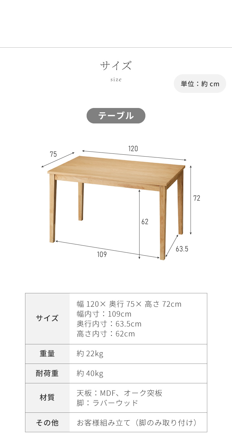 幅120×奥行き75×高さ72cm