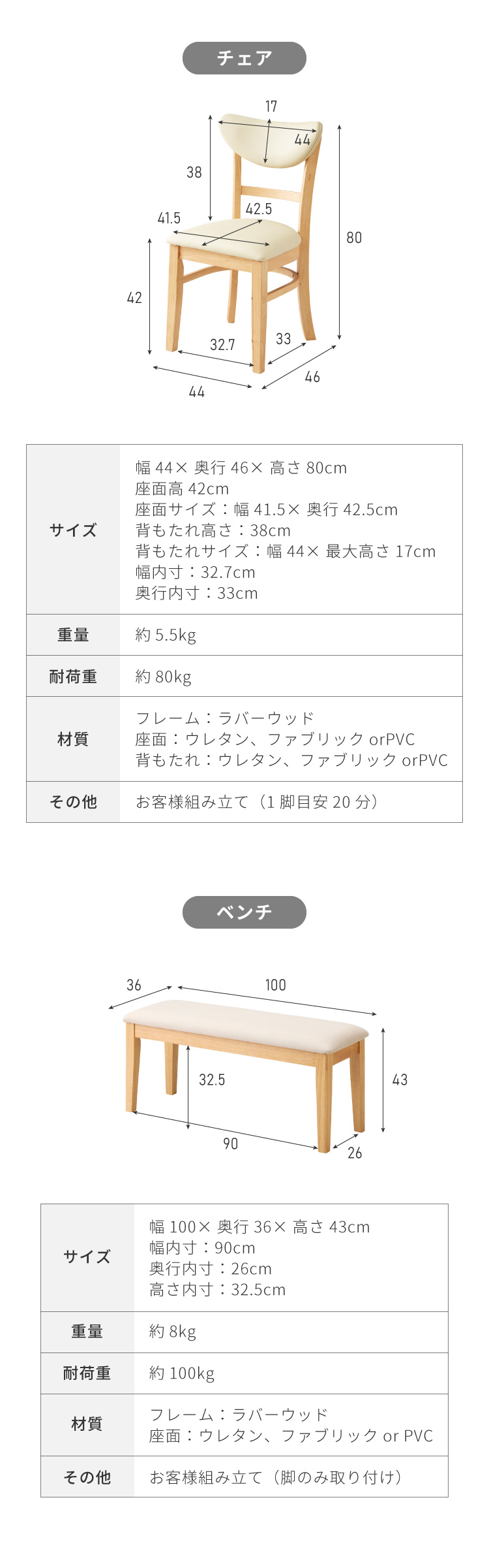 座面:ウレタン、ファブリックorPVC