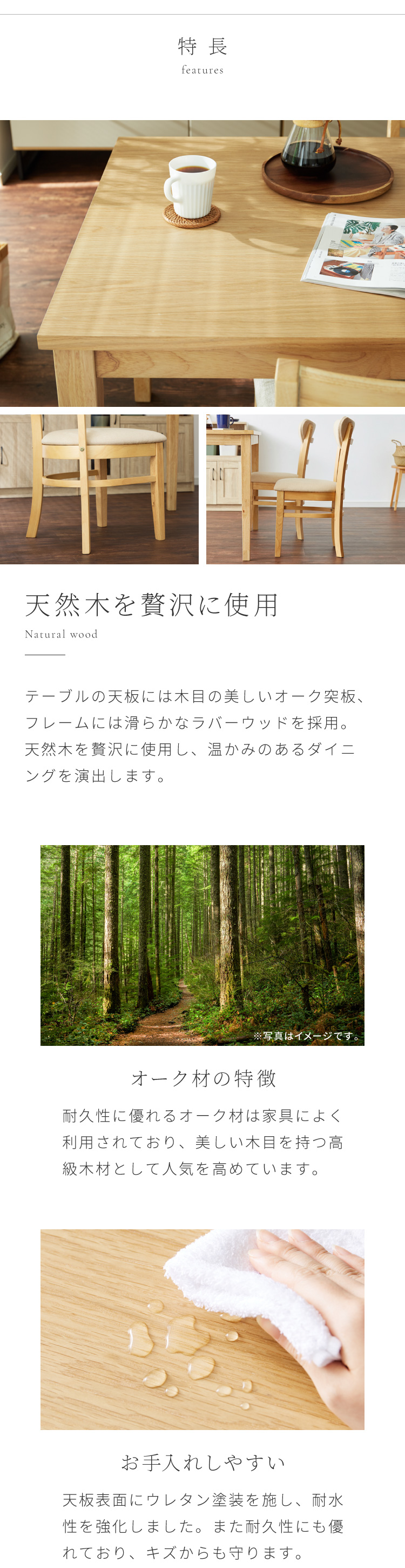 ダイニングセット 5点セット 120cm×75cm 背もたれウレタン 4人掛け ダイニングチェア セナUT 天然木 オーク ダイニングテーブル セット ダイニング