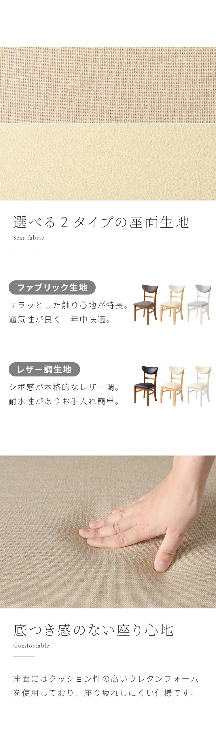 背もたれ:ウレタン、ファブリックorPVC
