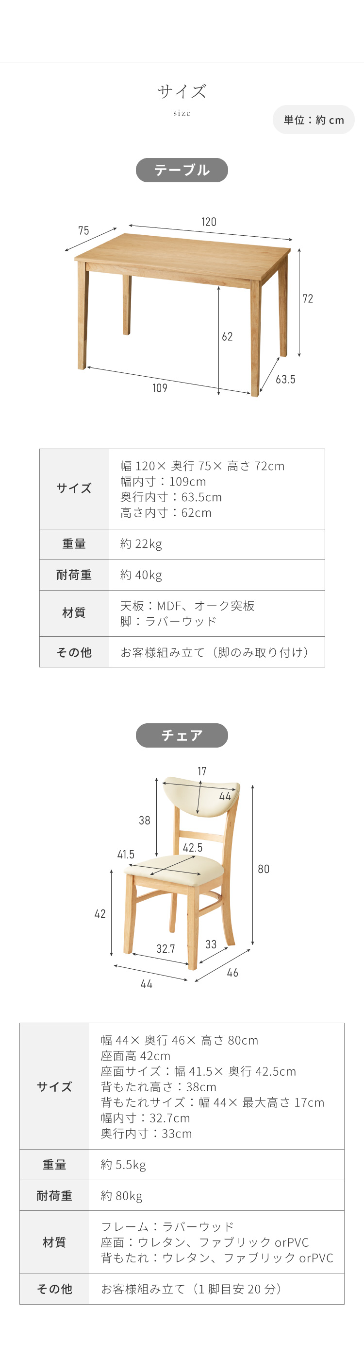 テーブル:120×75cm