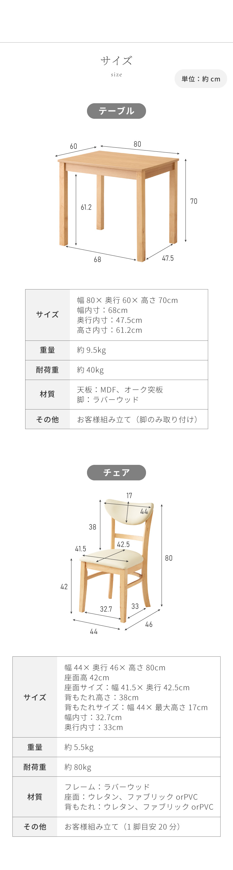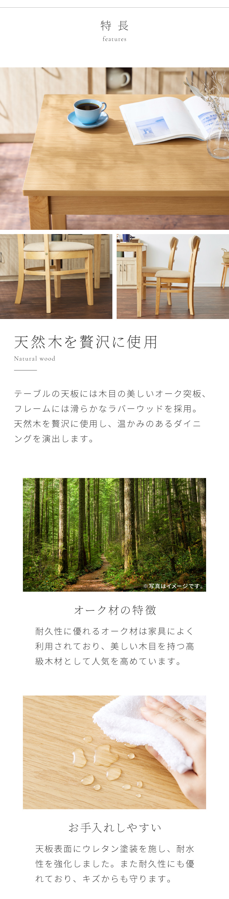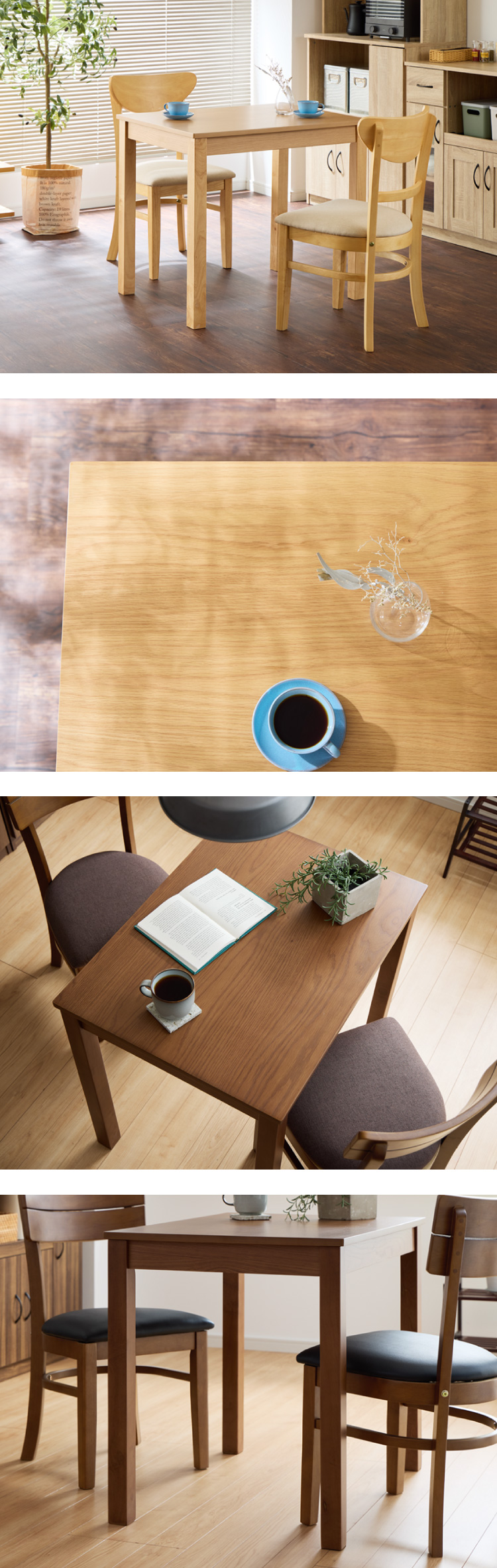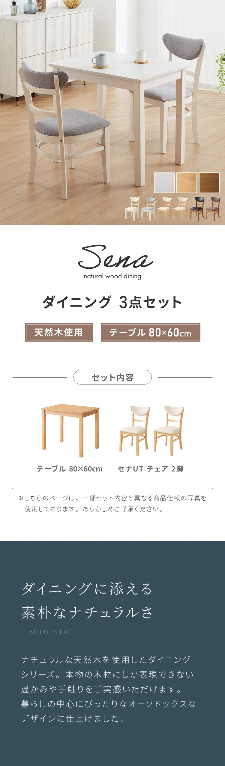 ダイニング3点セット 2人掛け 80×60cm 背もたれウレタン ダイニングチェア セナUT 天然木 オーク突板 ダイニング テーブル カフェテーブル