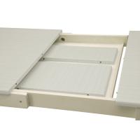 4段階に伸張可能なダイニングセットです。テーブル幅130cmから伸張用天板20cm・30cmの2枚を使い