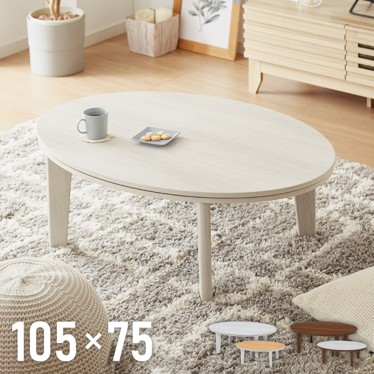 楕円形こたつ テーブル 幅105 こたつテーブル 炬燵 コタツ 北欧 かわいい 可愛い 白 ホワイト 楕円 オーバル センターテーブル ローテーブル おしゃれ 代引不可