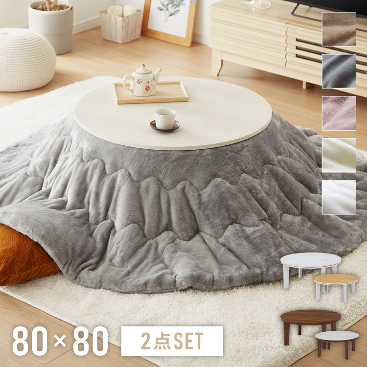 円形こたつ 布団付き 2点セット テーブル+掛け布団 幅80 こたつテーブル こたつ布団 炬燵 コタツ 北欧 メレンゲタッチ ふわとろ かわいい 可愛い 代引不可