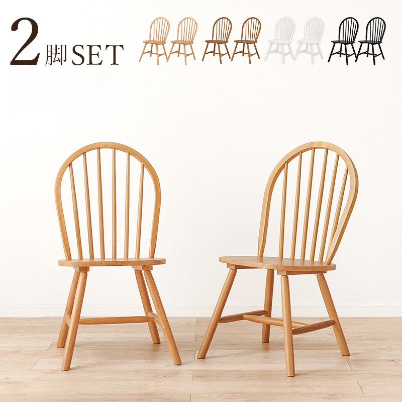 ウィンザーチェア 2脚セット 天然木 ダイニングチェア ボウバックチェア 木製 ナチュラル モノトーン ホワイト ブラック 白 黒 椅子 イス チェアー 代引不可