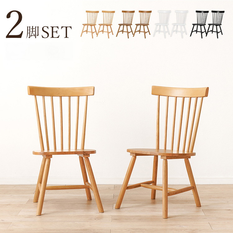ウィンザーチェア 2脚セット 天然木 ダイニングチェア コムバックチェア 木製 ナチュラル モノトーン ホワイト ブラック 白 黒 椅子 イス チェアー 代引不可