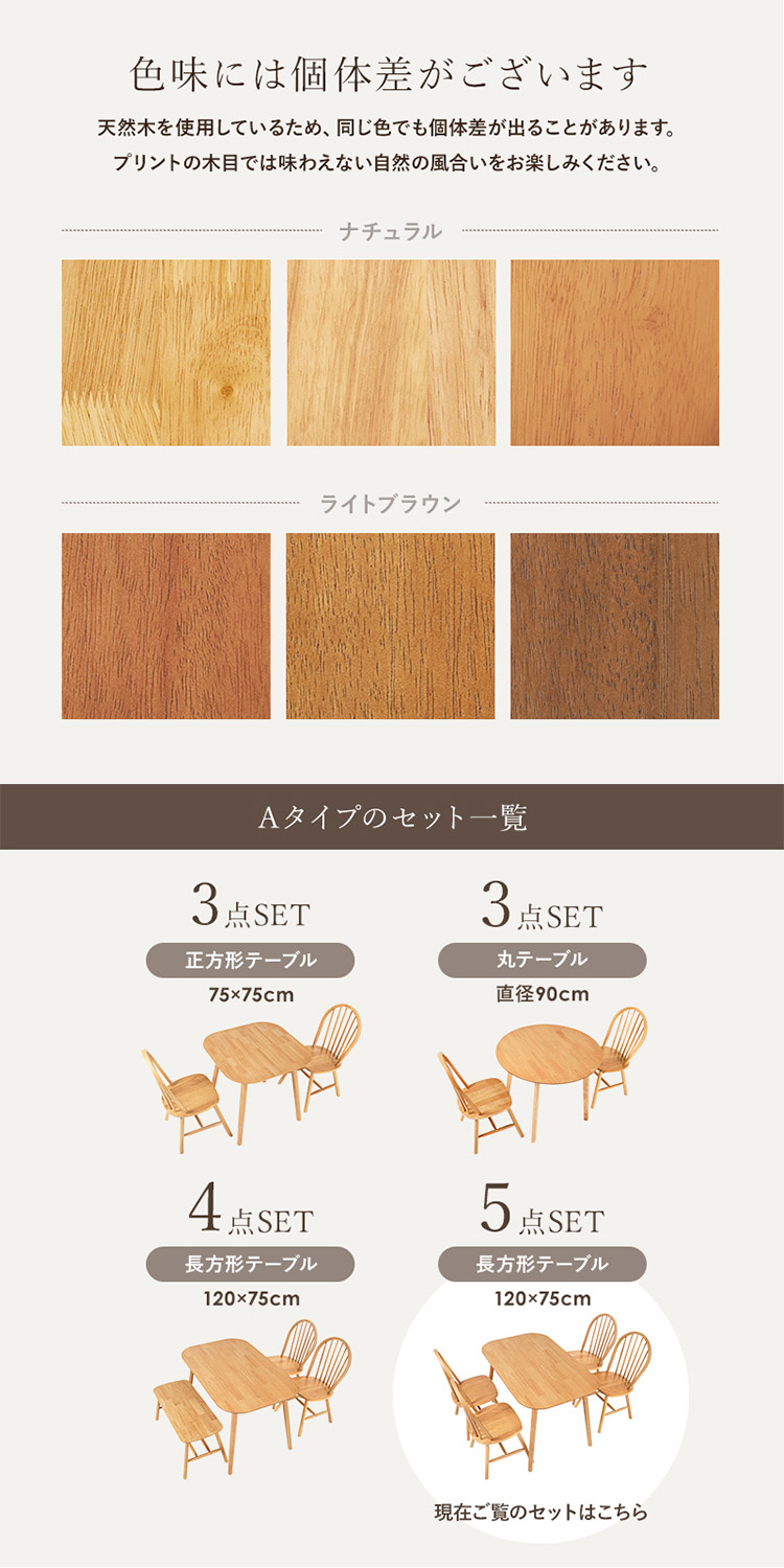主材:天然木、天板:(ナチュラル、ライトブラウン)天然木化粧繊維板・(ホワイト)繊維板