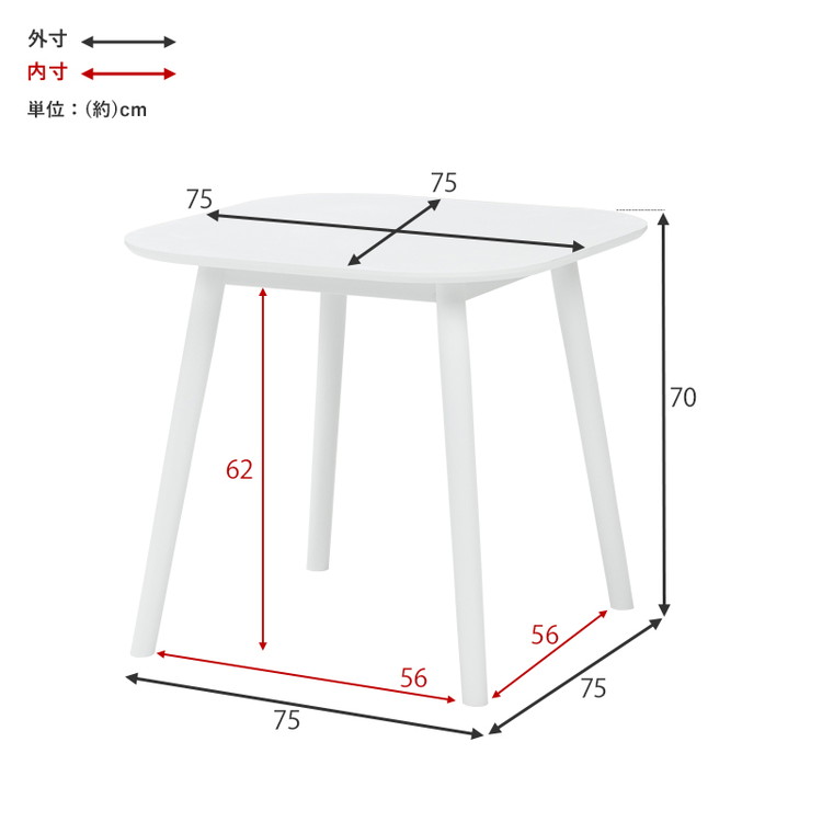 ダイニングテーブル 75×75cm 正方形 カフェ風ダイニング 天然木 テーブル 机 食卓テーブル カフェテーブル 2人サイズ 北欧 シンプル おしゃれ 代引不可