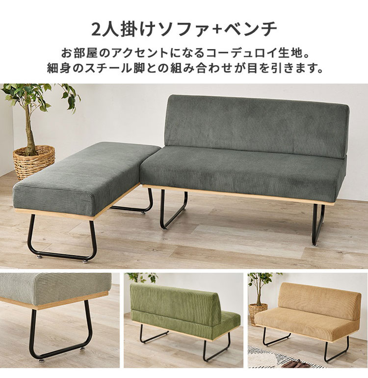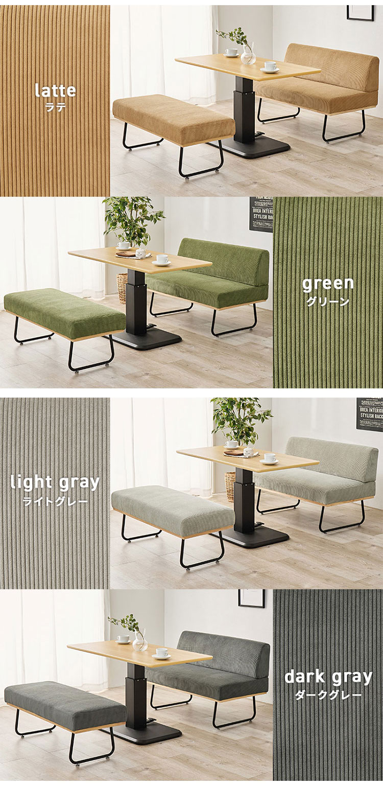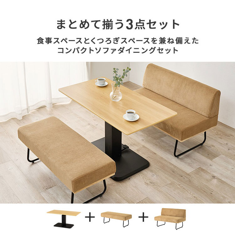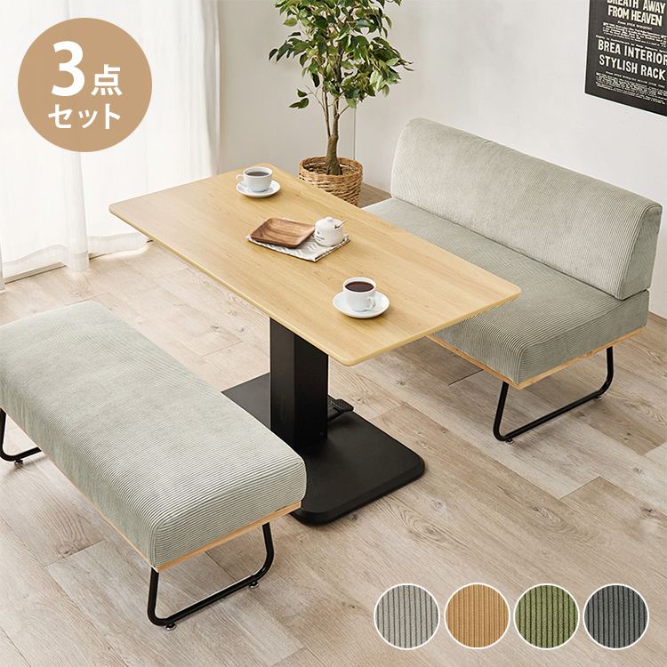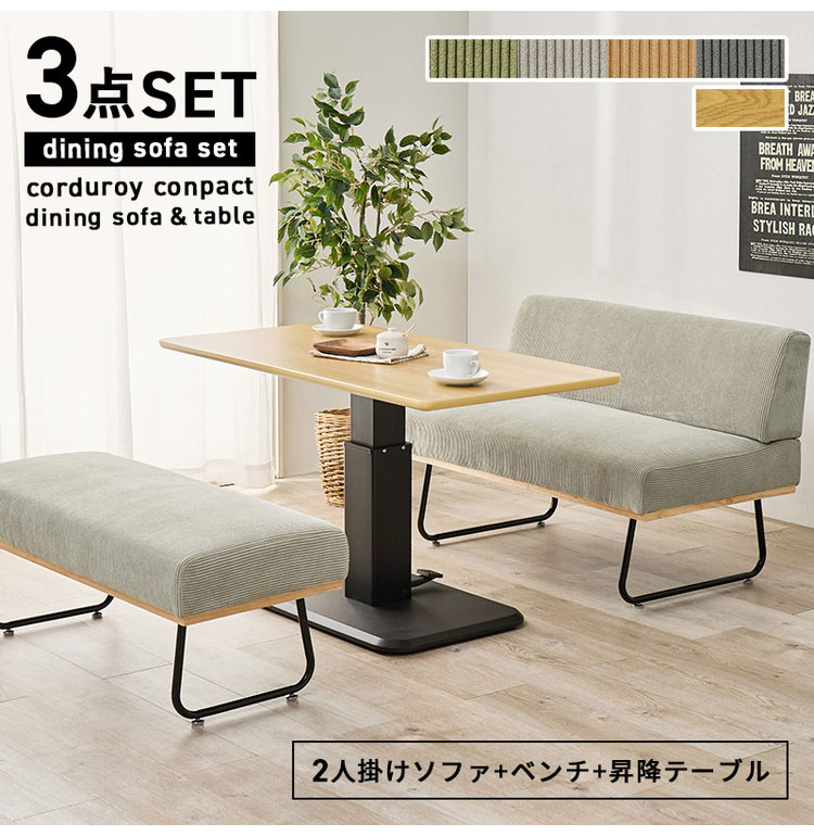 ダイニング3点セット 昇降テーブル+ソファ+ベンチ 幅115cm ダイニングテーブルセット ソファダイニング ダイニングセット コーデュロイ おしゃれ 代引不可