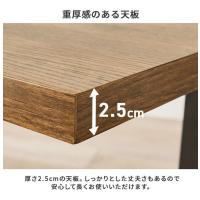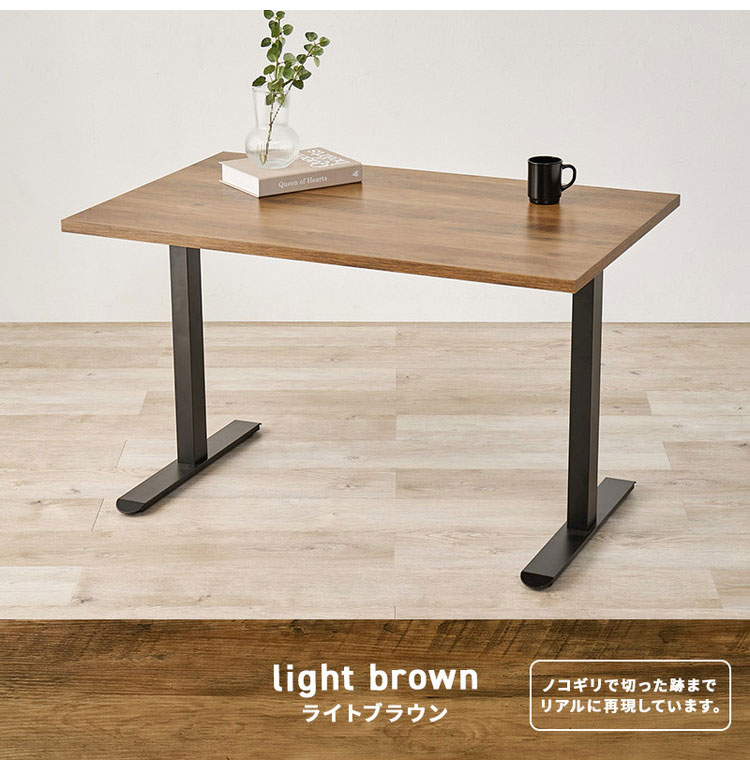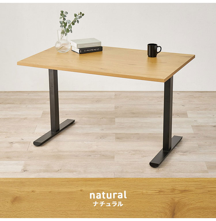少し低めのシンプルT字脚デザインが特徴のダイニングテーブル。重厚感のある天板はお手入れがしやすく、天然木の雰囲気を再現しています。