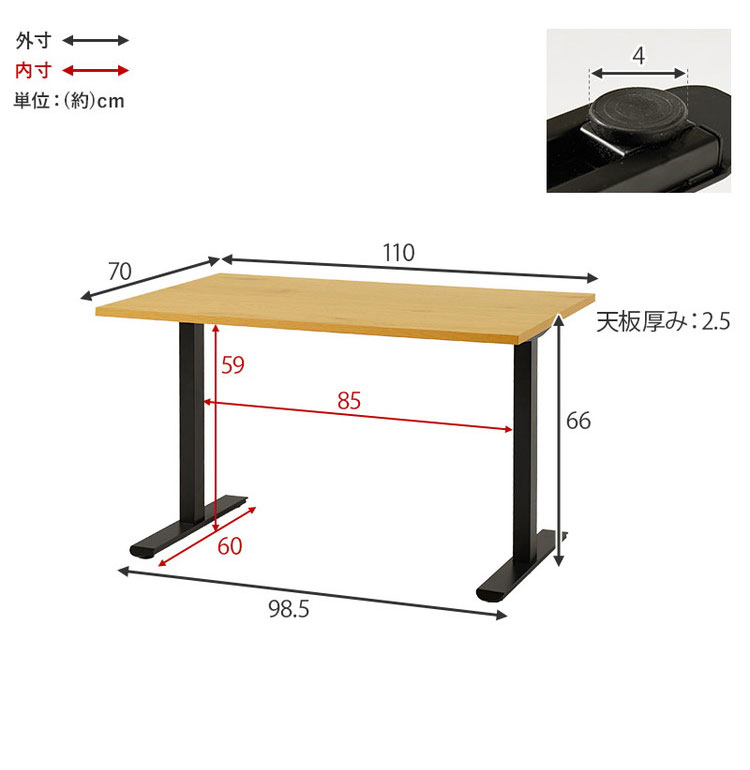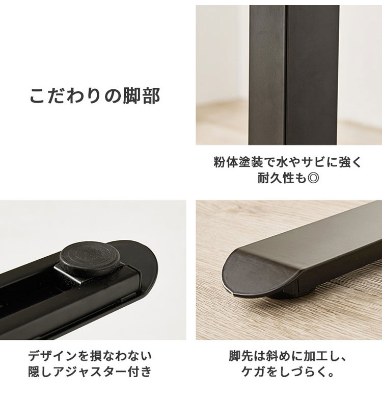 天板:合成(メラミン)樹脂化粧繊維板、脚部:スチール