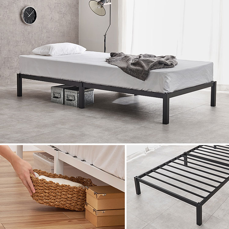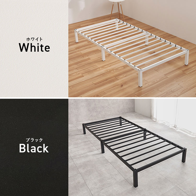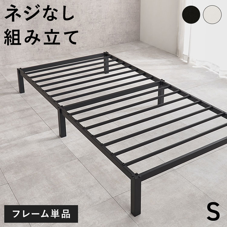 ネジ不要・簡単組立 スチールベッド シングル S ベッド ベッドフレーム 単品 パイプベッド シンプル ホワイト ブラック 白 黒 モノトーン ミニマル 代引不可