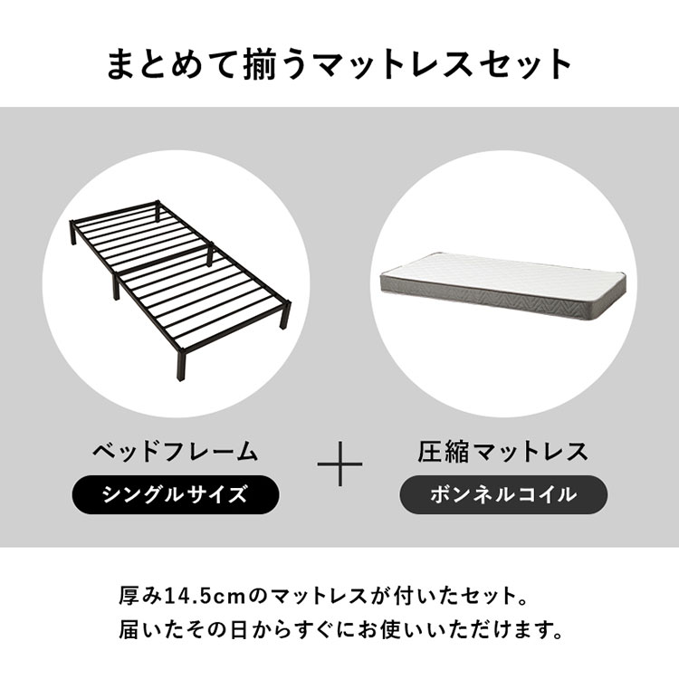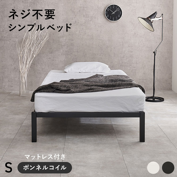 ネジ不要・簡単組立 スチールベッド シングル S ボンネルコイルマットレスセット ベッド ベッドフレーム マットレス セット パイプベッド シンプル 代引不可