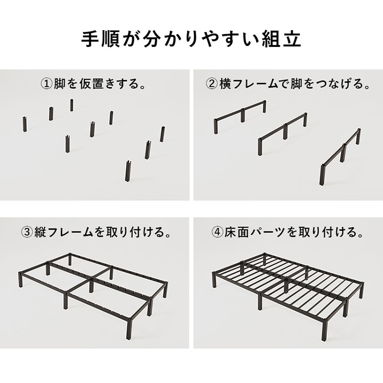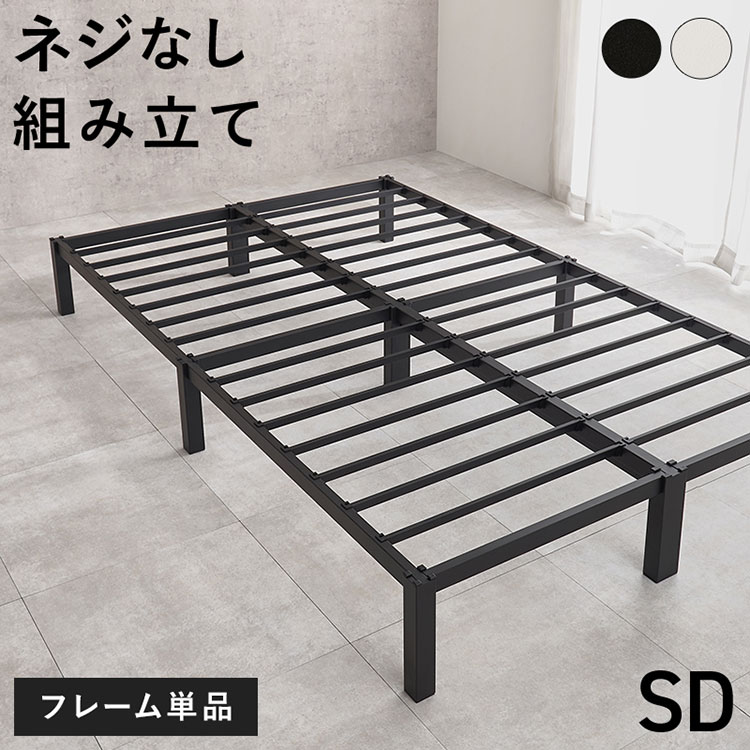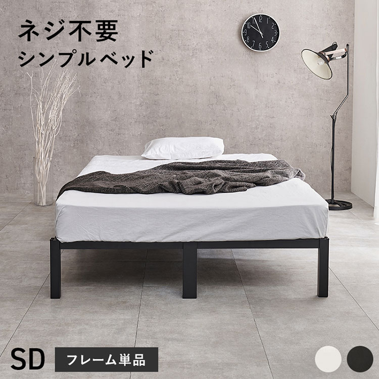 ネジ不要・簡単組立 スチールベッド セミダブル SD ベッド ベッドフレーム 単品 パイプベッド シンプル ホワイト ブラック 白 黒 モノトーン 代引不可