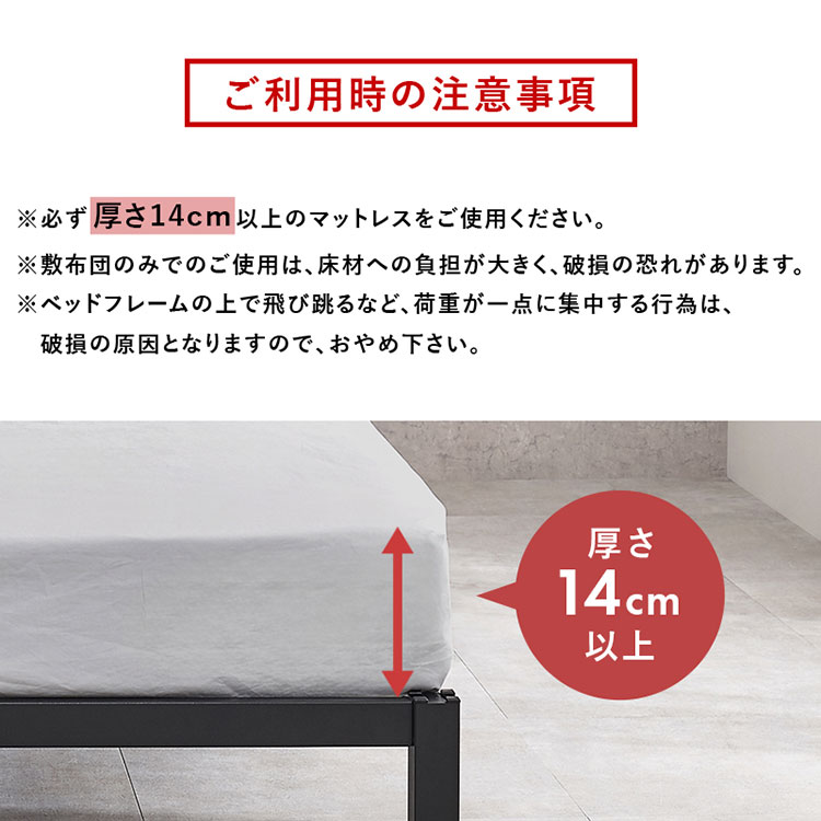 ネジを使わずパーツをはめ込む仕様なのでネジ頭が見えず、すっきりシンプルなデザインのセミダブルベッド。床面下は衣装ケースなどを入れて収納スペースにもなります。