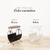 サイドテーブル ラタン調 マガジンラック 完成品 棚付き スリッパラック 奥行30cm PEラタン スリム ロートアイアン かわいい おしゃれ 代引不可