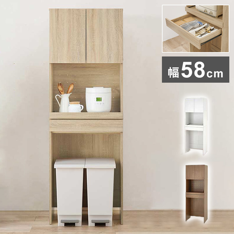 ゴミ箱上ラック 幅58 引出し・スライド棚付き 3段 扉付き ごみ箱上ラック 大容量 ゴミ箱 上 ラック レンジ台 レンジラック ゴミ箱ラック 代引不可