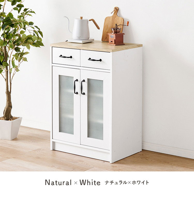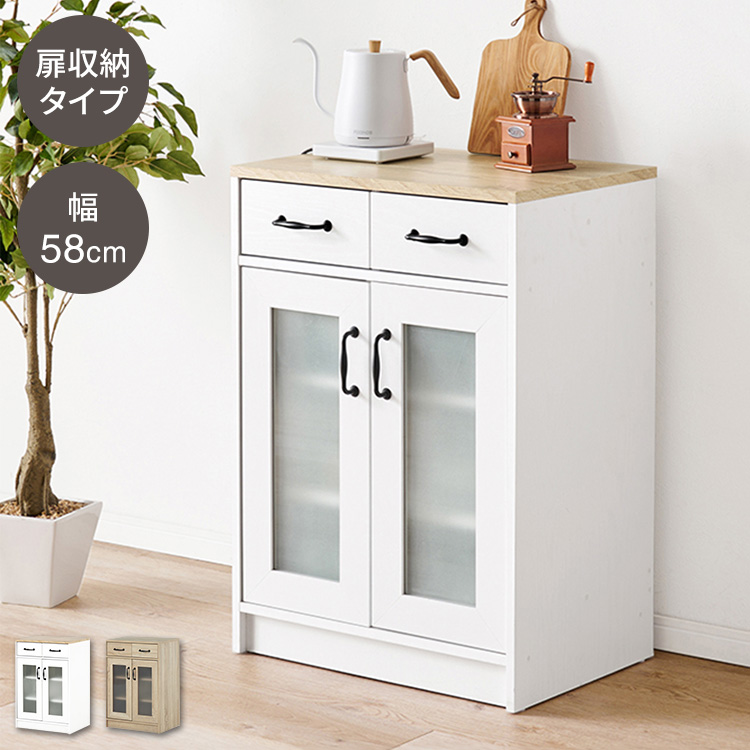 カントリー調 キッチンラック 幅58 扉収納 キャビネット 食器棚 可愛い かわいい 北欧 おしゃれ アンティーク調 キッチン収納 棚 ラック レンジ台 代引不可