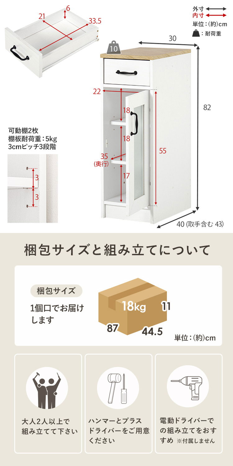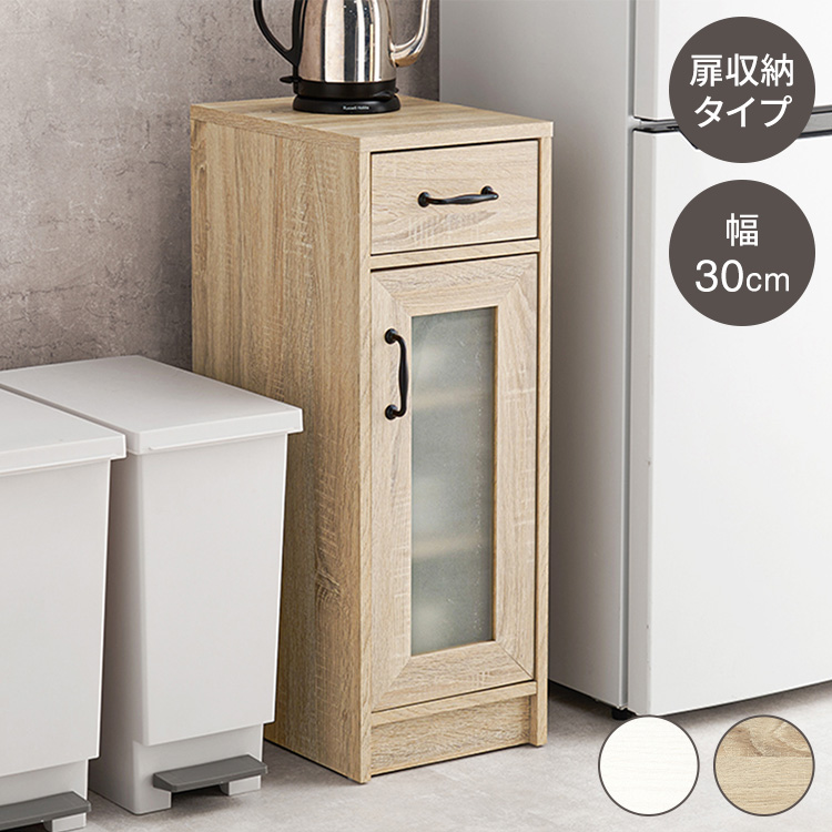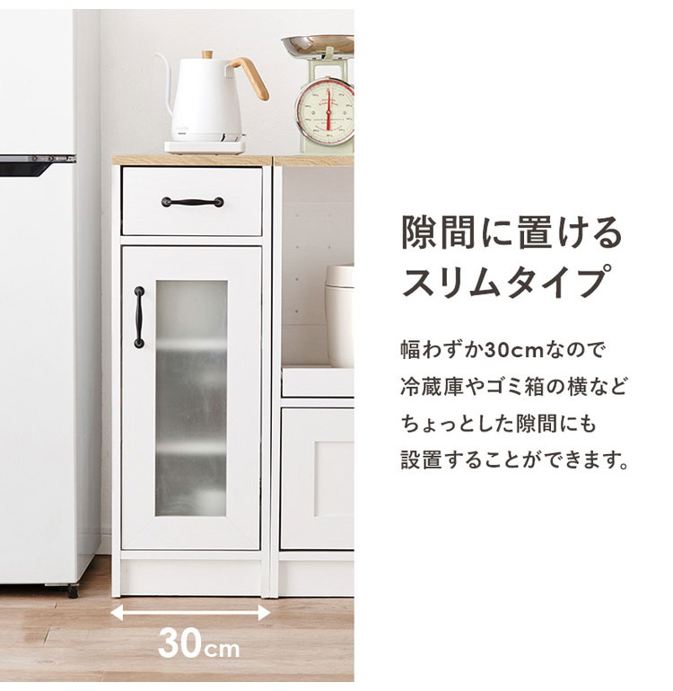 カントリー調 キッチンラック 幅30 スリム 隙間収納 すき間収納 扉収納 キャビネット 食器棚 可愛い かわいい 北欧 おしゃれ アンティーク調 代引不可