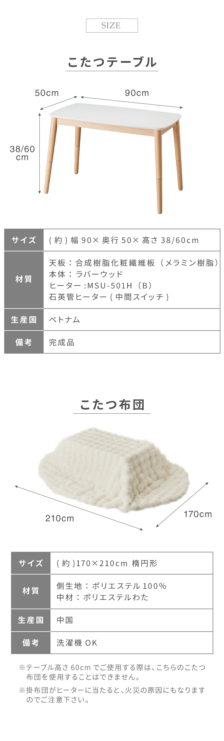 高さが変わる 2wayこたつテーブル モコモコ布団付き 2点セット 年中使える 高さ38cm/60cm 幅90cm おしゃれ ハイタイプ ロータイプ 切替式 代引不可